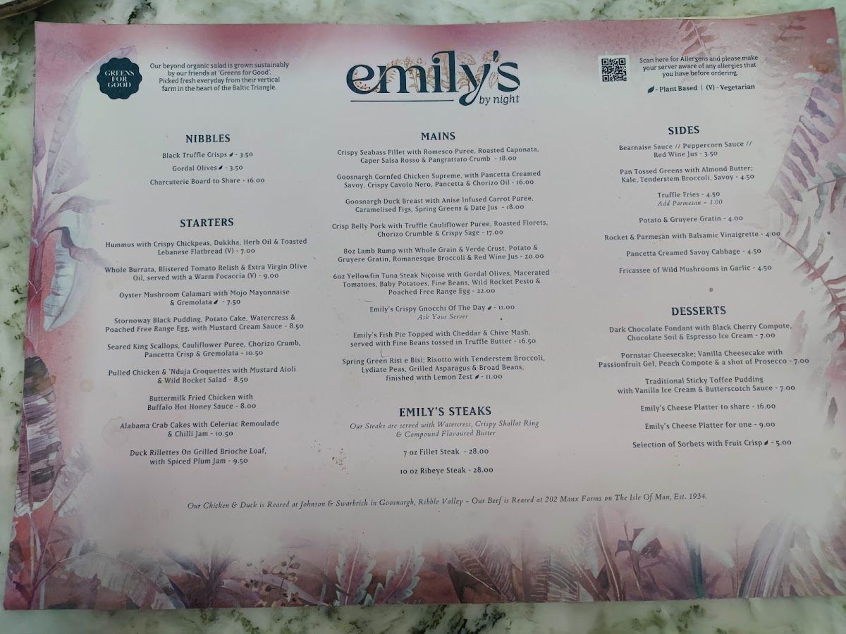 Welcome to Emily's, a hidden gem nestled at 25 Brows Ln, Formby. This captivating eatery boasts a menu that brilliantly marries tradition with contemporary flair. Start your culinary journey with exquisite appetizers like the Spiced Parsnip Veloute or the indulgent Beef Tartare. The vibrant Beetroot Salmon Ceviche showcases fresh ingredients that tantalize the palate.